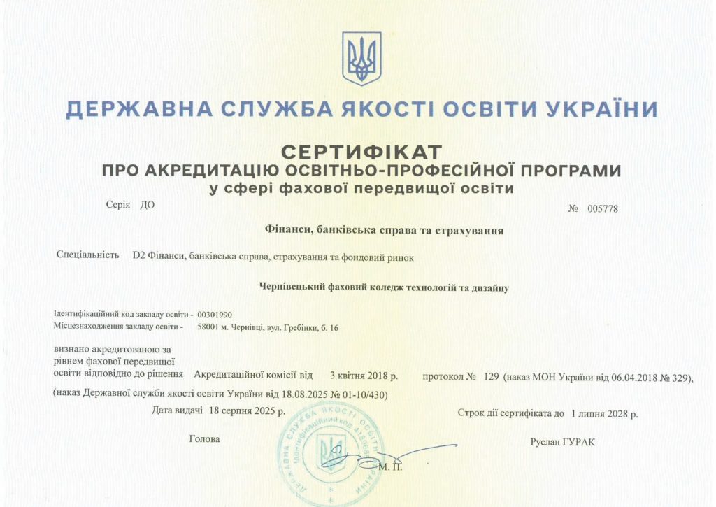 • Ліцензія на здійснення освітньої діяльності за посиланням: